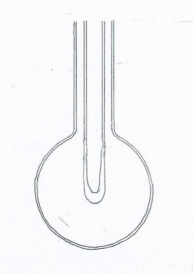吹きものについて、昔、弊社で造っていた人工吹きの魔法瓶(二重フラスコ)を例にとって説明します。